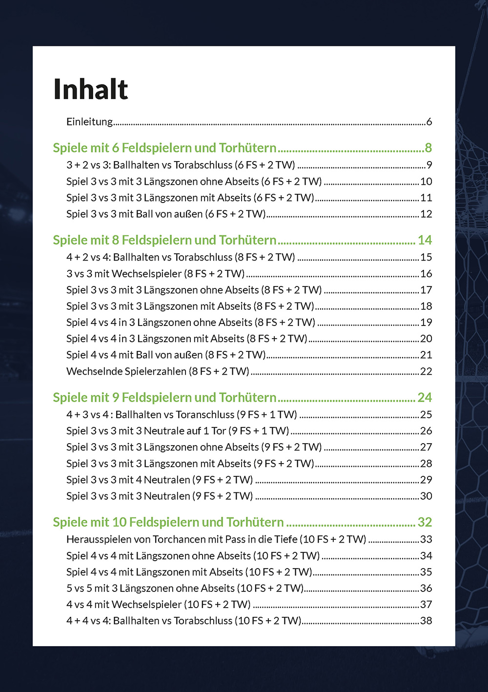 Gelungenes Heft, dass sehr hilfreich ist adhoc das Training bei unterschiedliecher Spieleranzahl anpassen zu können.
