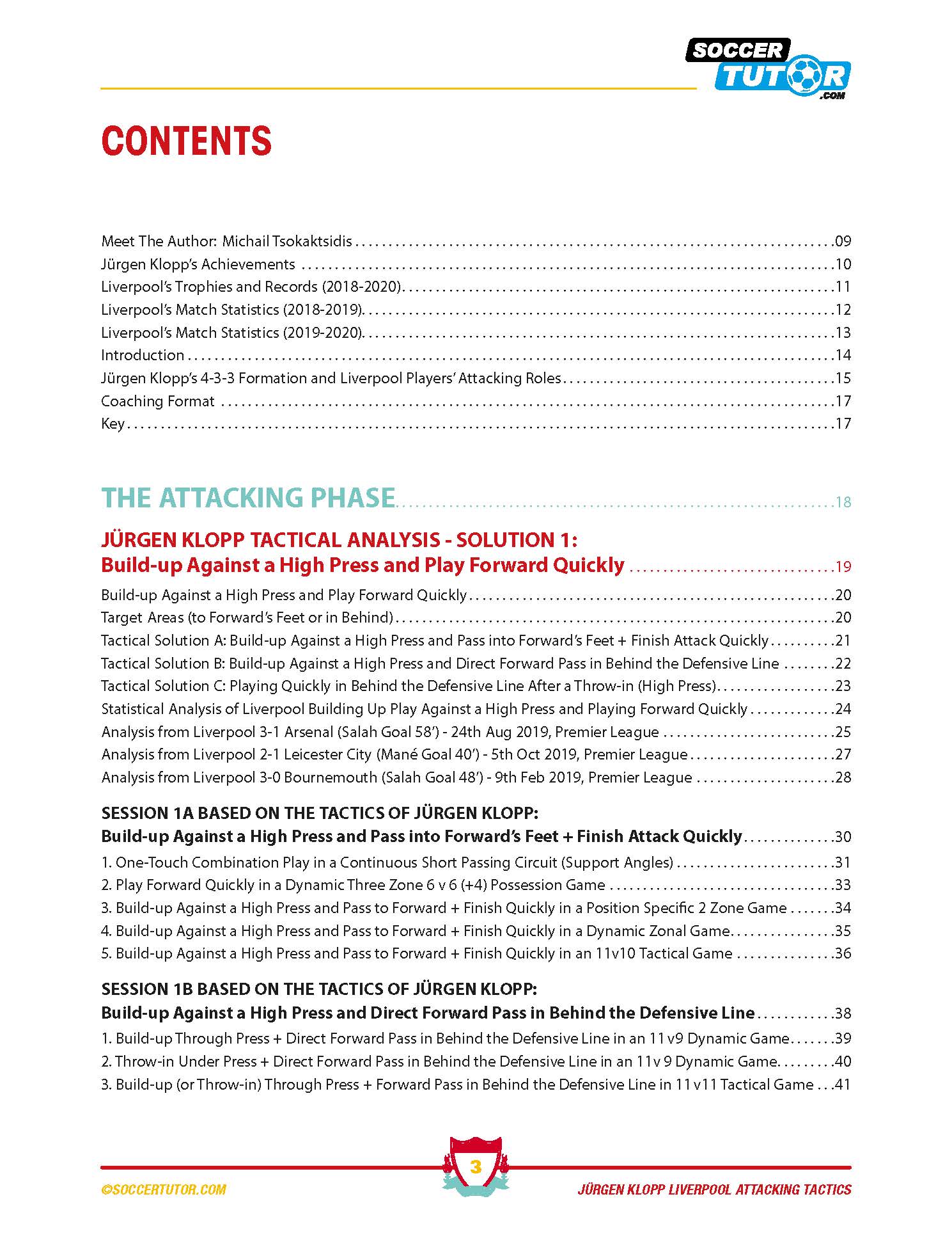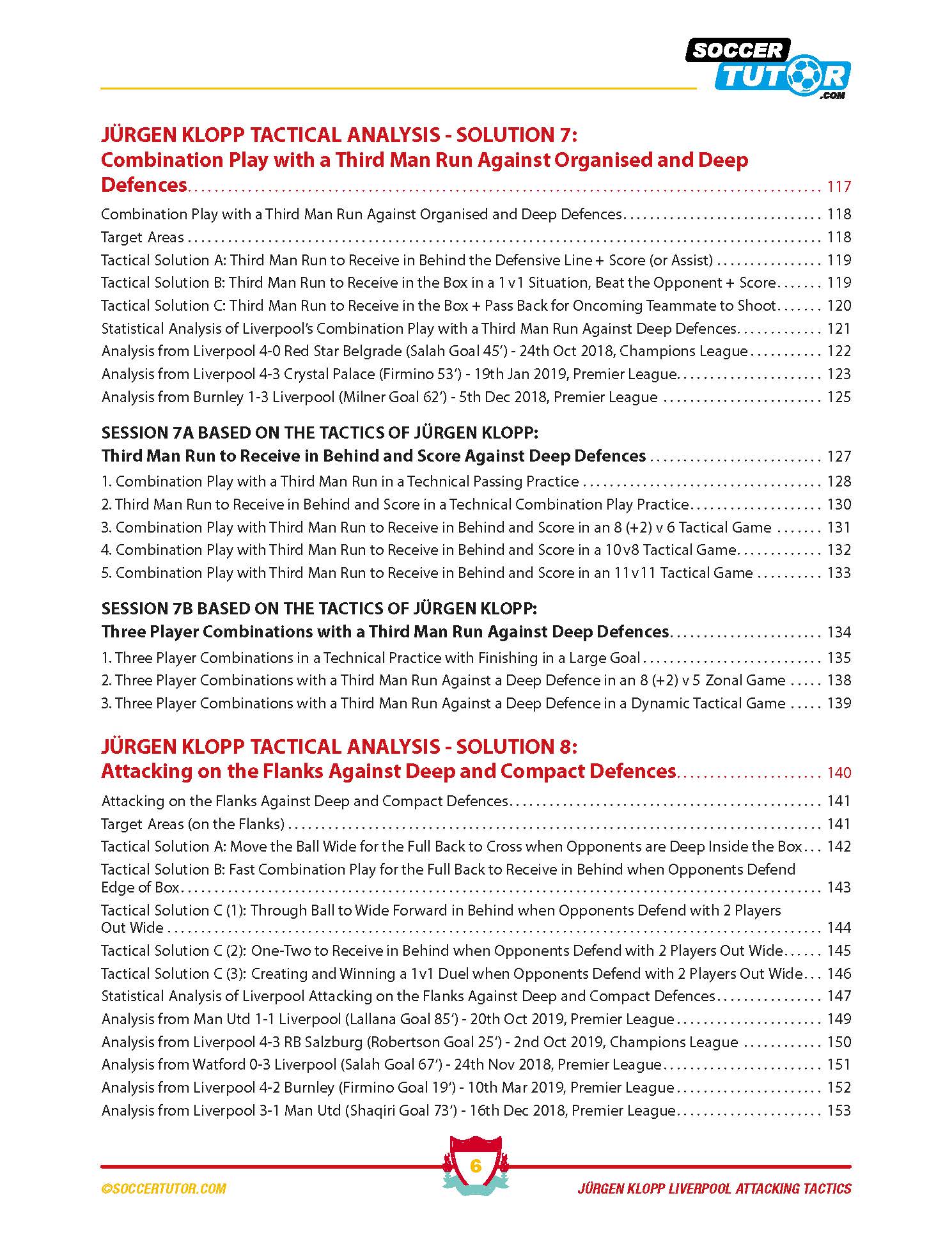 Each Tactical Situation has analysis of Jürgen Klopp Liverpool attacking tactics and is followed by a full training session to help you input the tactics into your training sessions for your team.