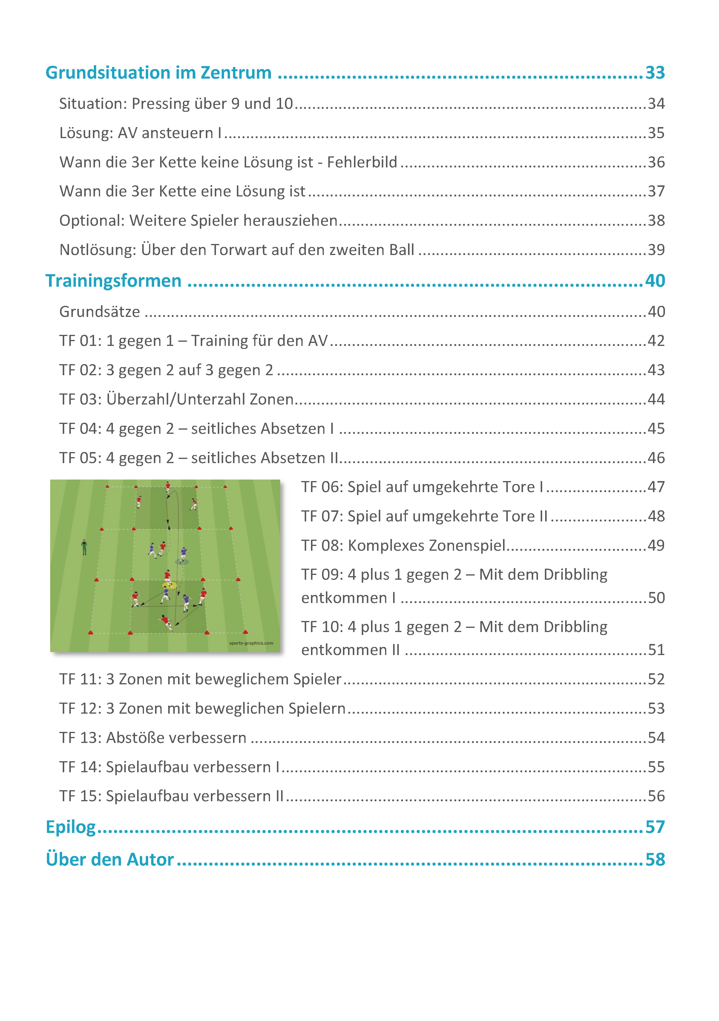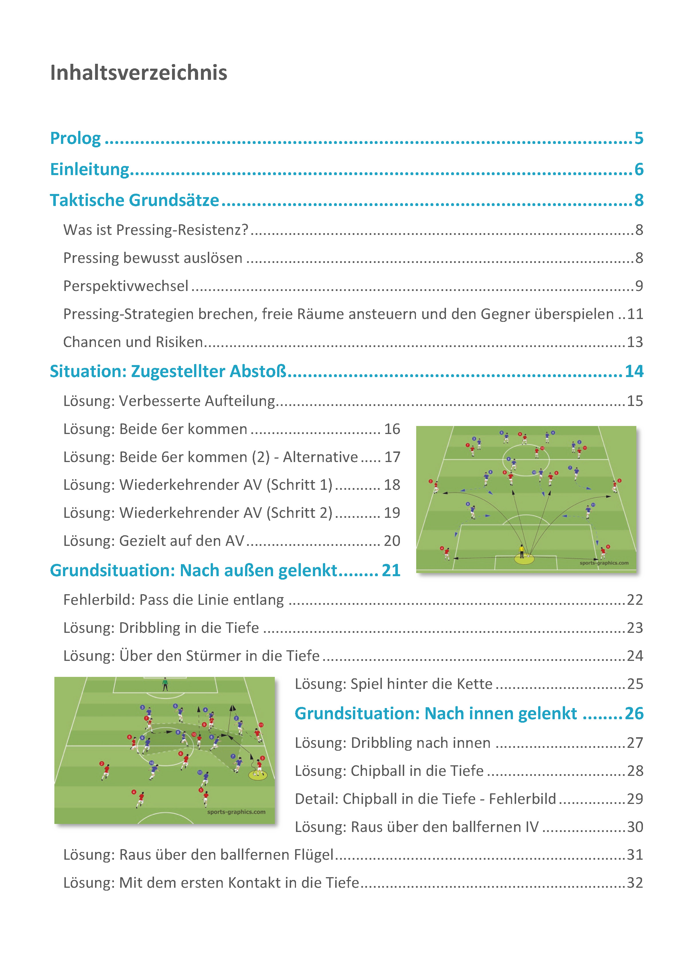 Damit Ihre Mannschaft sowohl individuell, als auch mannschaftstaktisch pressing-resistenter wird, finden Sie in diesem Heft folgende Kapitel: