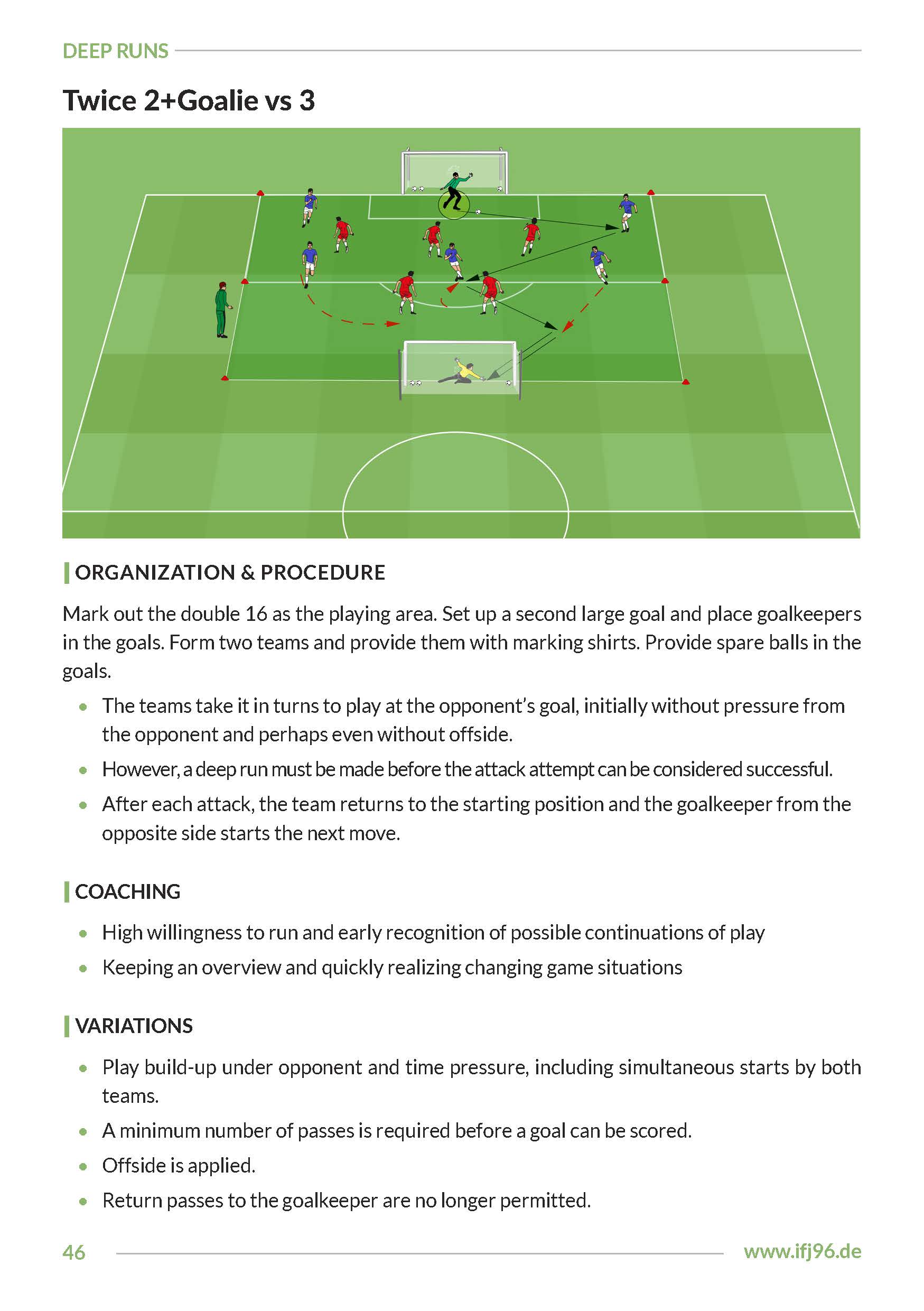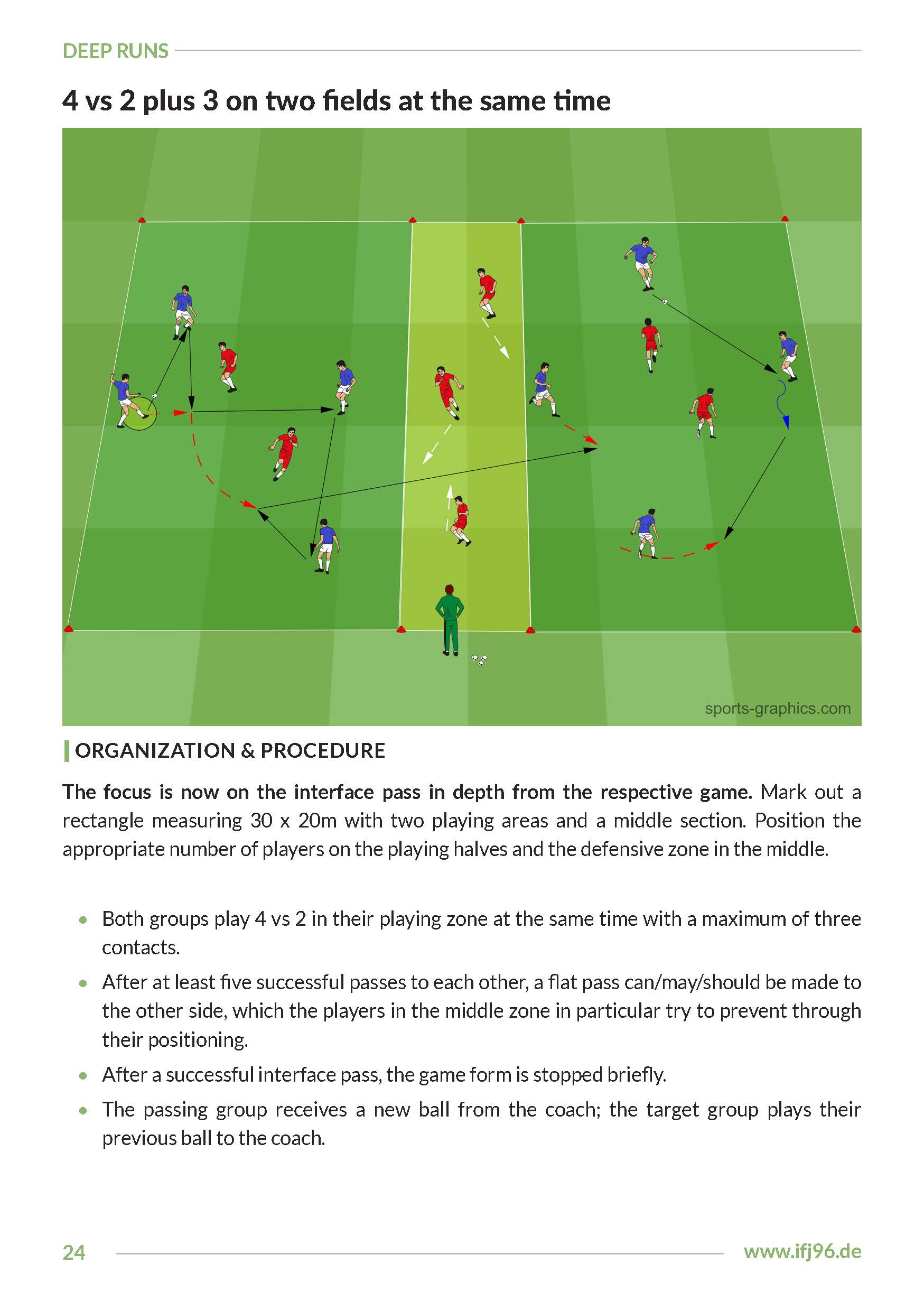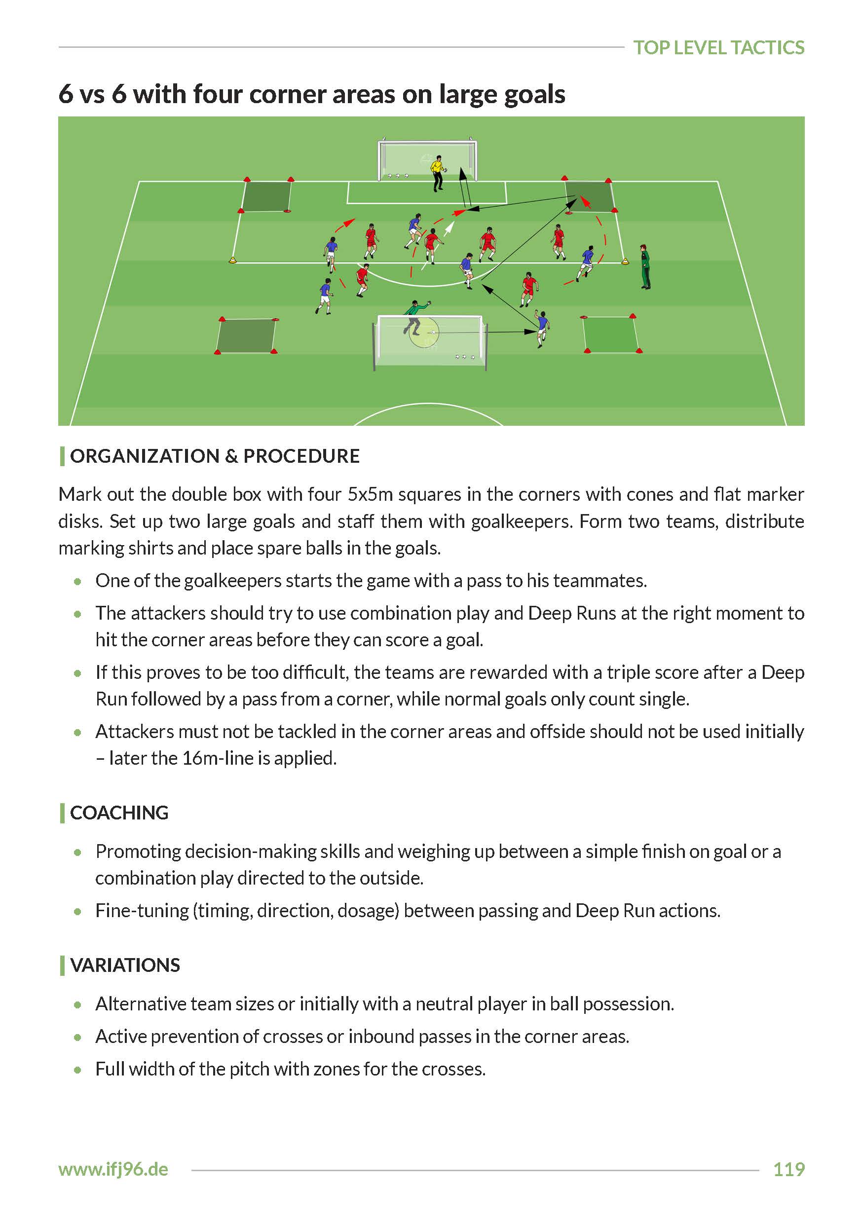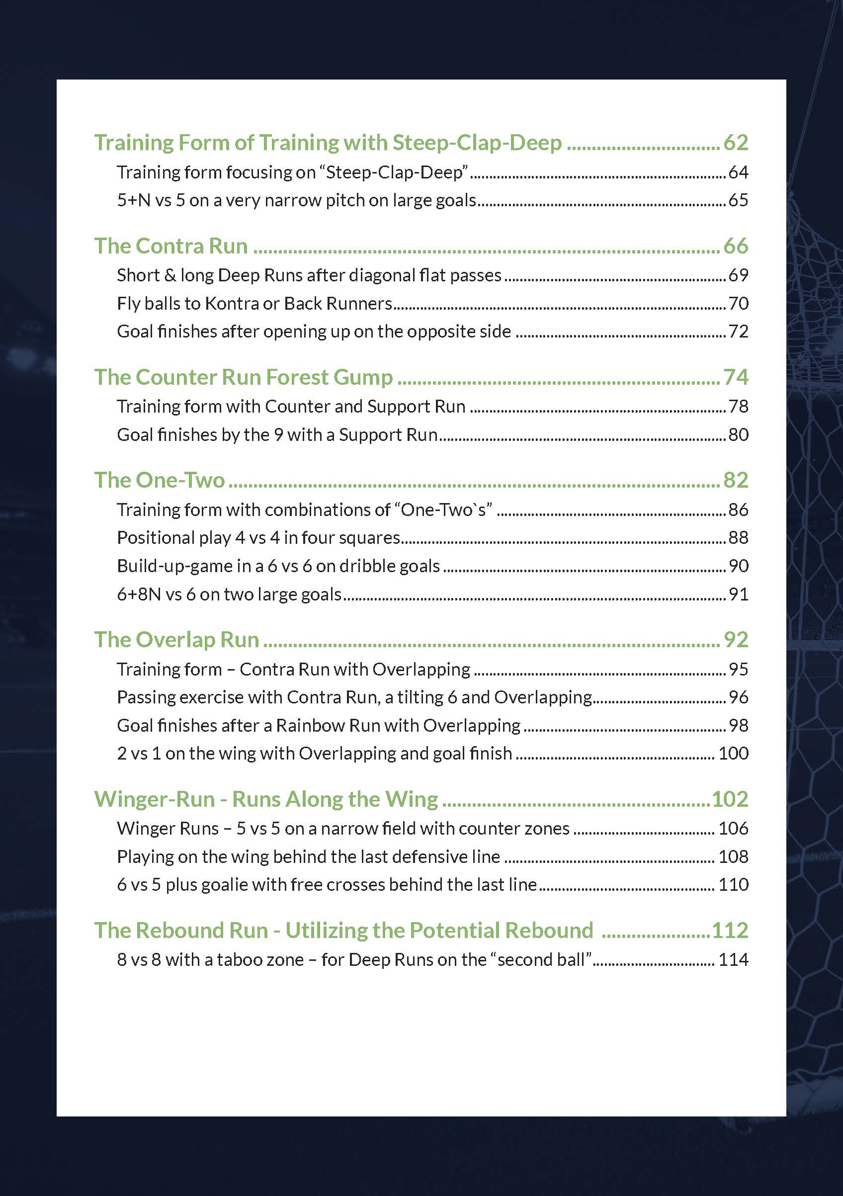 The book includes 40 detailed training and game forms that teach the principles of deep movement, passing precision, and attacking coordination. Each exercise can be adjusted for different age groups, systems, and focus areas, allowing coaches to bring depth, tempo, and structure into every session.