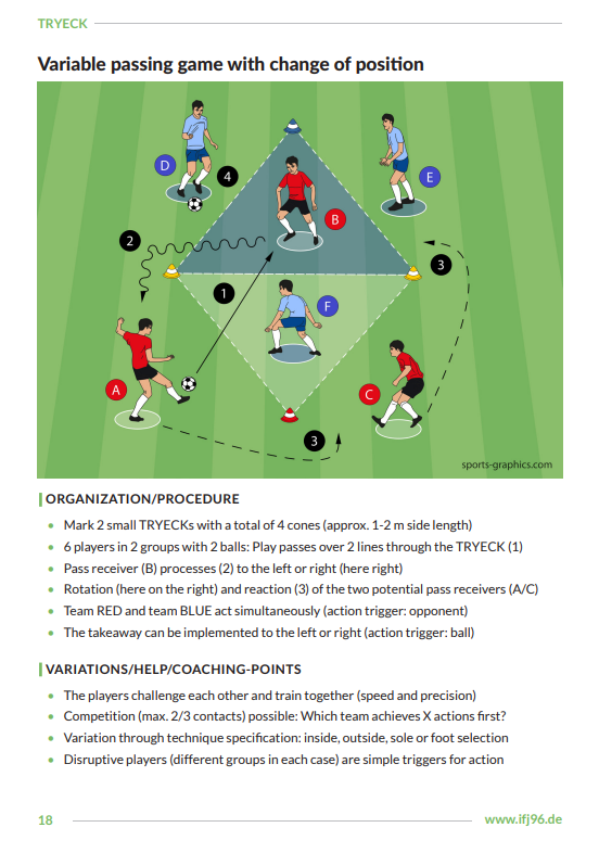 By combining technical repetitions with game-relevant decision-making components, TRYECK Technical Training enables practical learning that can be directly applied in real-game situations. This booklet provides an in-depth look at the principles of this training approach and explains how varied exercises, realistic action triggers, and intensive coaching lead to sustainable player development.