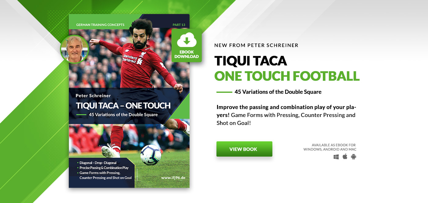 Author: Peter Schreiner Pages: 154 Practices: 84 Level: U11-PRO PDF Preview of "Two-Footedness in Soccer" For several years, Peter Schreiner has been analyzing Europe's top goal scorers and has published the Shooting Matrix. Part of the Shooting Matrix is his latest project - "Two-Footedness in Football", which he has successfully presented in numerous lectures and practical demonstrations at conferences and online seminars. In this book, Schreiner answers the following questions: Can two-footedness in football be trained at all? What advantages does a two-footed player have? How do you train the non-dominant foot? How can two-footed training be integrated into coaching from U9 to high-level amateur football? Schreiner presents 84 training exercises to develop and improve two-footedness. Training two-footedness is a process that begins in youth. Every invested moment not only strengthens technique but also enhances the ability to act more cleverly on the field. Peter Schreiner - Institute for Youth Football Two-Footedness in Football: Training and Benefits Developing two-footedness is a key component for versatile and unpredictable players. Since players often instinctively use their dominant foot, it is crucial to push them out of their comfort zone. Special training exercises that encourage the use of the non-dominant foot are essential. Additionally, detailed coaching and coordination drills are necessary to optimize posture and movement sequences. Advantages of Two-Footedness: Two-footed players gain a significant advantage as they can solve situations more flexibly and effectively. Players can vary their actions and become less predictable to their opponents. Defenders find it much harder to anticipate their movements. Effective Training Methods: Peter Schreiner demonstrates effective training methods to help players develop and solidify their two-footedness: Basic Drills: High repetition rates with targeted use of both feet improve confidence and security. Drills Under Time Pressure: Increase speed and require quick decision-making. Game Forms with Provocation Rules: Encourage players to use both feet intentionally. Varied Exercises: Learning progress is reinforced through diverse challenges. With systematic exercises and targeted game forms, players gain the ability to act flexibly and effectively with both feet – a decisive advantage on the field. Content: Precise passing with left and right Two-footed training: Passing with a partner Partner drill at a cone: 2-touch forward-back Forward-back-diagonal Two-footed passing at the cone goal Two balls rolling – pass directly back Two balls rolling (2) - pull from the center – pass back Forward-back with left/right turns Two-footed passing at two offset goals - forward-back-diagonal Passing and pulling Two-footed passing in sequence Diagonal – bounce – switch Two-footedness in a 3-player group Two-touch passing at a cone goal Right-left-left-back away Fast passes in a triangle with two balls Fast passing sequence - one player runs Pass combination left-right with 180-degree turn Figure-8 run with two balls Passing - 90-degree - direct play with two balls 90-degree variation Left-right-open to the side About the Author Peter Schreiner Peter Schreiner is considered a globally recognized expert in youth football. The former coach, including U19 Schalke 04, is the founder of the Institute for Youth Football and a sought-after coach educator, author, and speaker with numerous appearances at football congresses (DFB, BDFL, AEFCA) in over 28 countries. His publications have been translated into over seven languages. Many of his works, co-authored with renowned experts such as Horst Wein and Norbert Elgert, are considered standard references today. These include "The Art of Attacking Football" and "FUNiño - Developing Game Intelligence." He is the organizer of the "Derbystar Youth and Amateur Coach Congress" and co-founder of "easy Sports-Software."